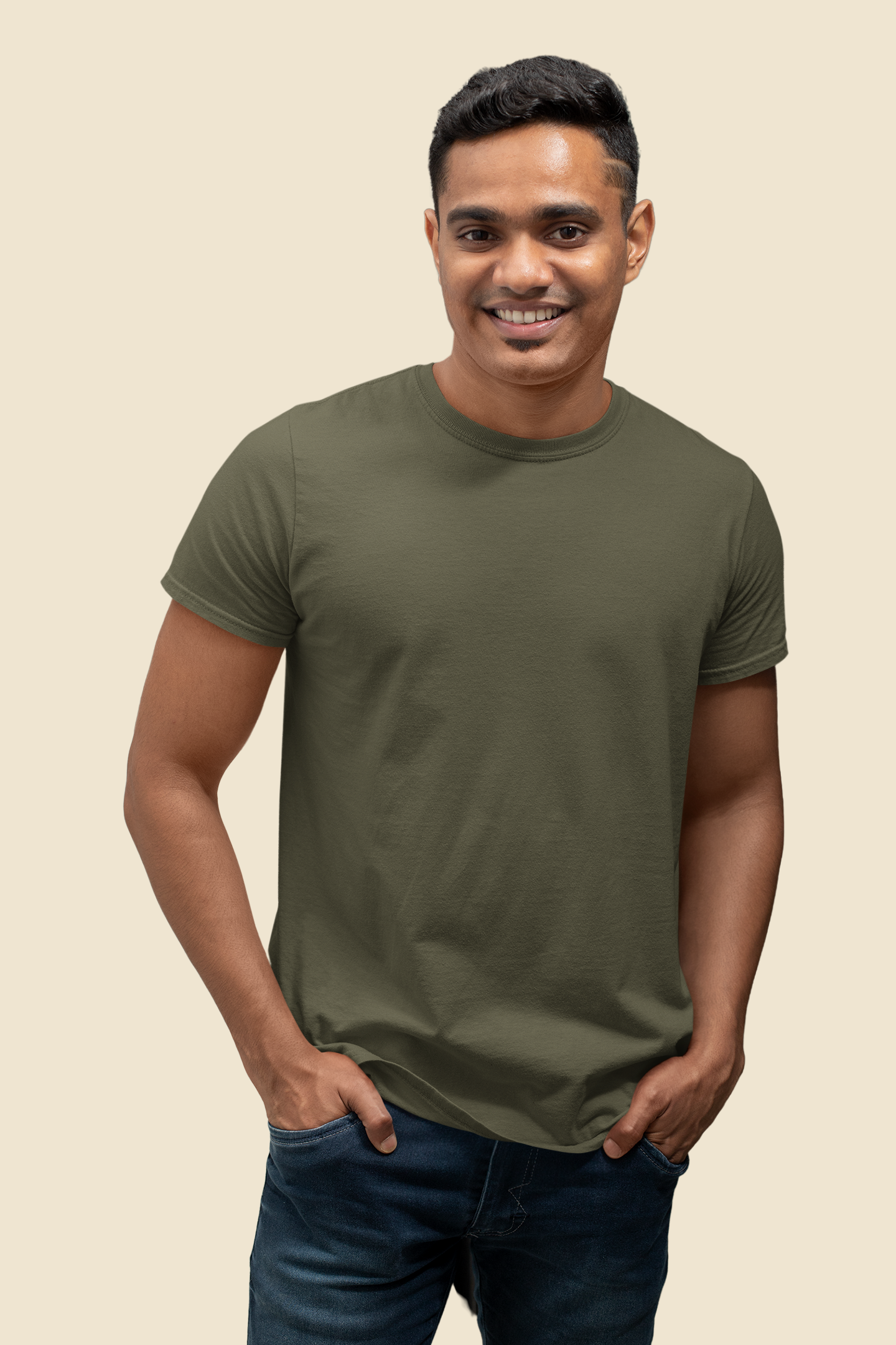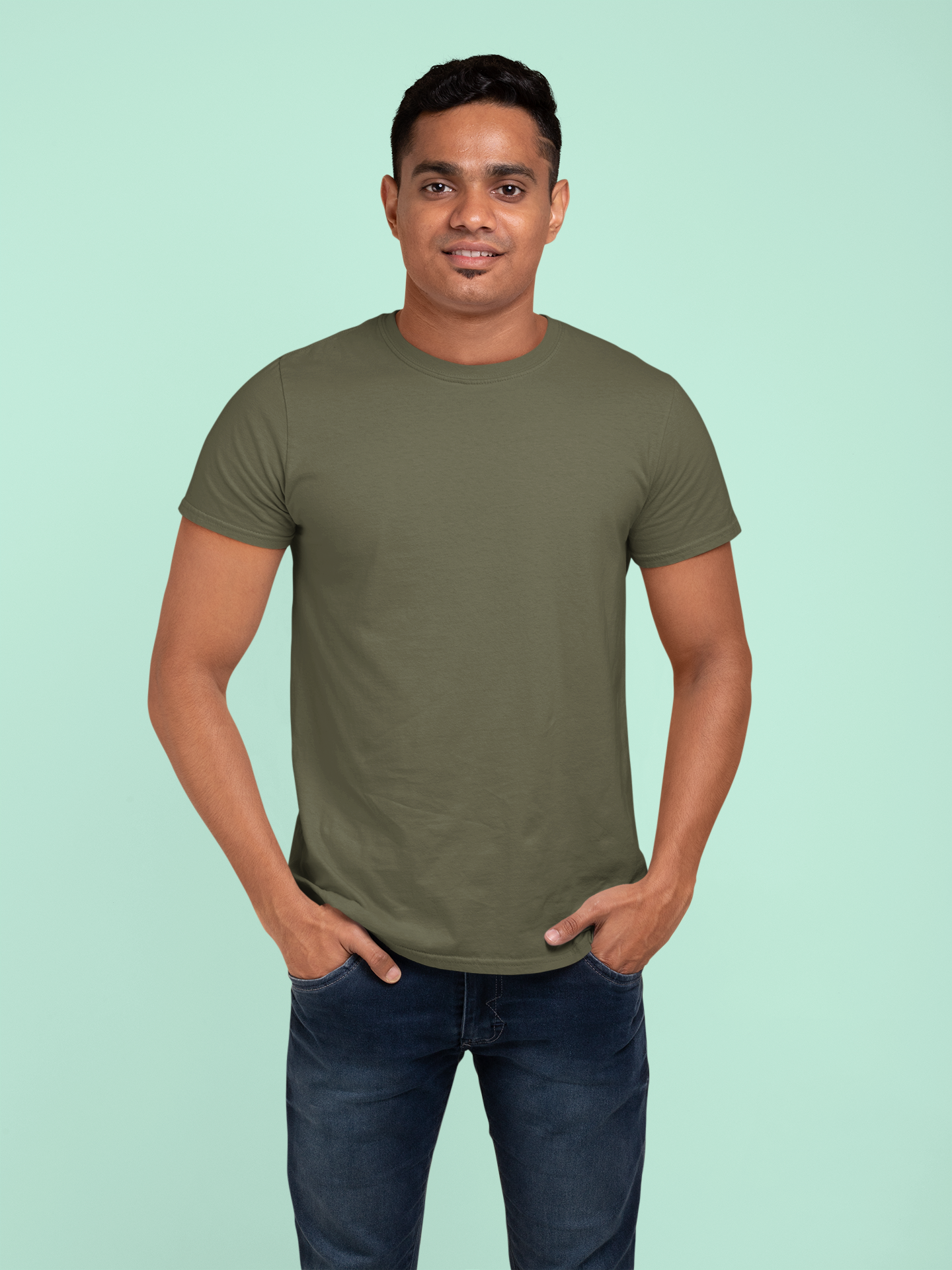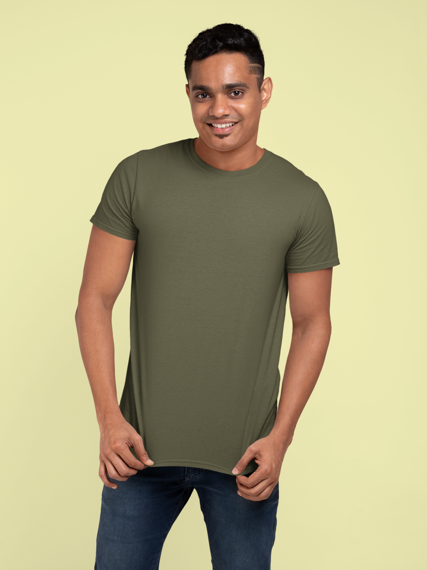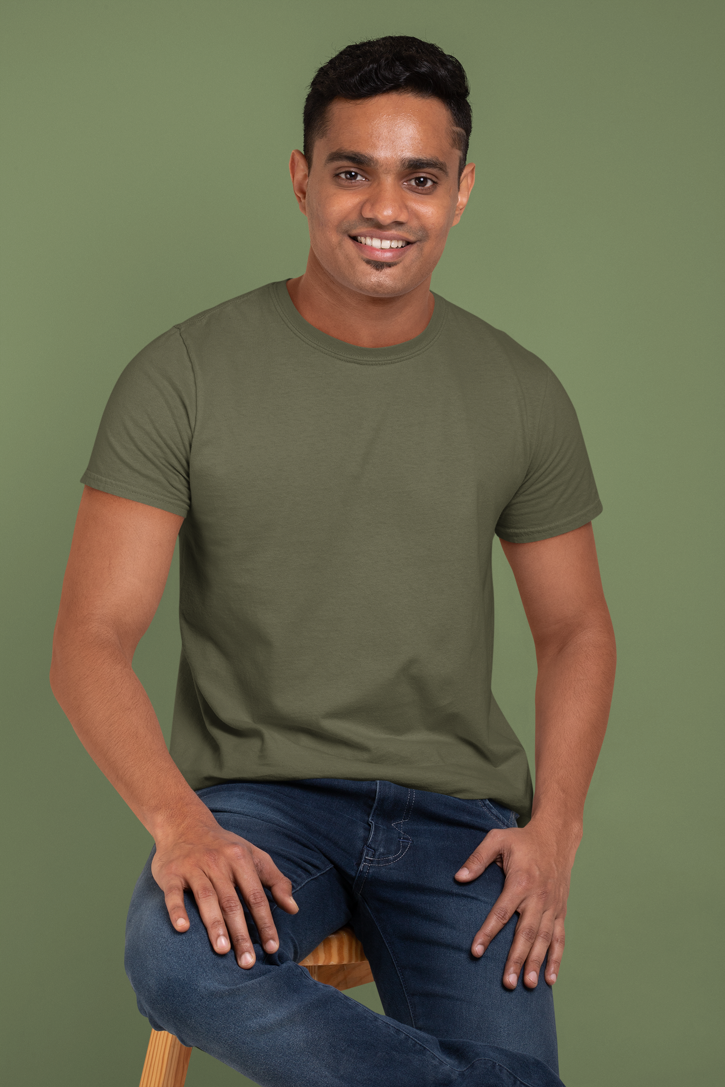 Olive Green Platinum 180 GSM Unisex Round Neck